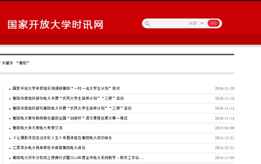 近日,中央电大时讯、湖南省电大以及衡阳市电视台、衡阳日报、衡阳党建网等新闻媒体对我校“农民大学生培养计划”“三授”活动、国家广播电视大学“一村一大”调研活动以及农民大学生实践教学与典型学员进行了密集报道。
