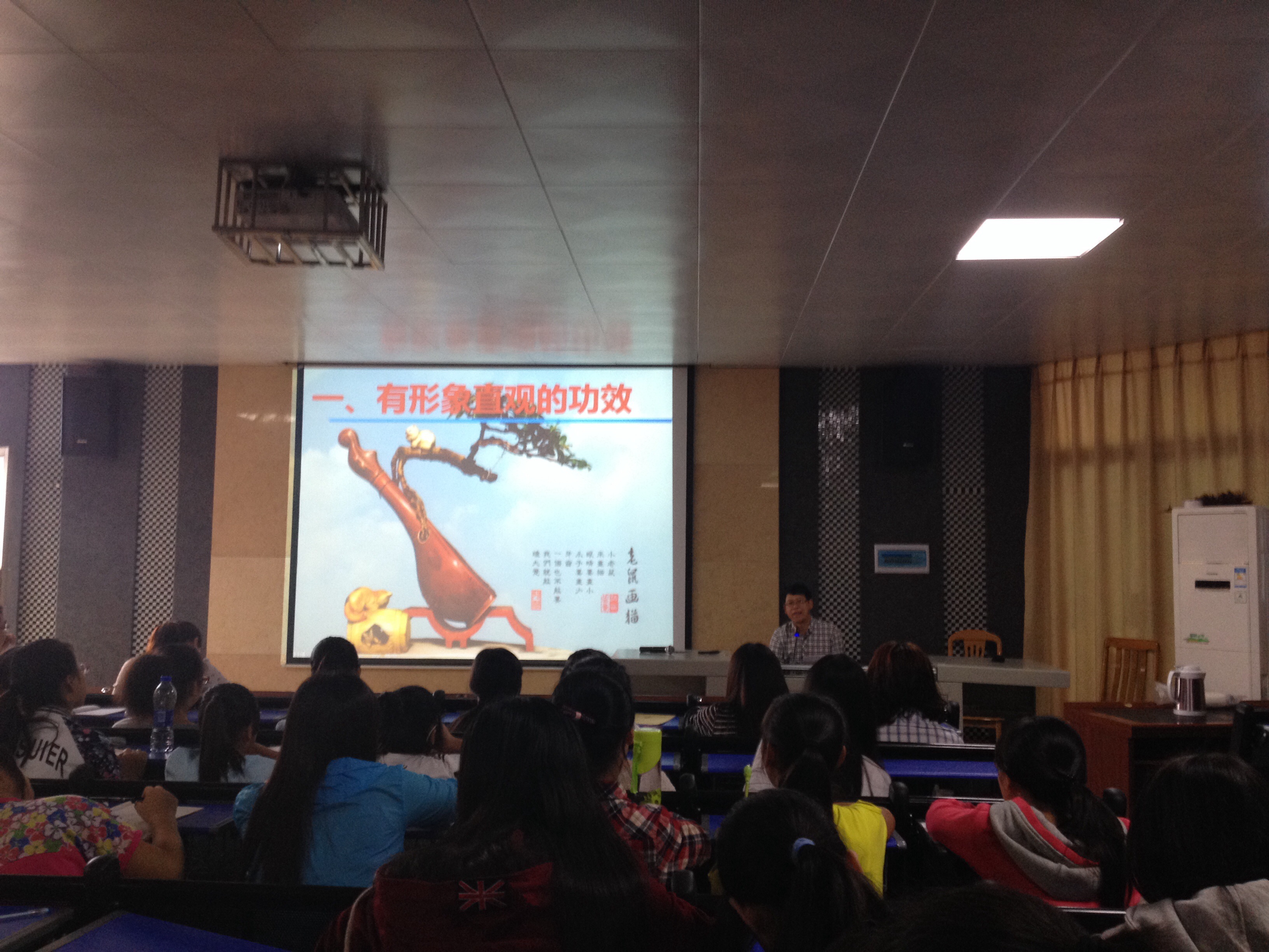 本次讲座的主题为“数字在诗词中的妙用”。肖校长立足修辞,以不同时代的诗歌为载体,阐释了数字在古诗词中的作用,或直抒诗人的喜怒哀乐,或直绘笔下的艺术形象,从而达到加重感情色彩,渲染气氛或突出主题,开辟意境的作用。 考虑到我校中职学生的特点,肖校长注重讲座过程中与学生互动,鼓励学生大胆发表见解,教室里时而传出朗朗读书声,时而飘出欢快的笑声,达到了寓教于乐的效果。