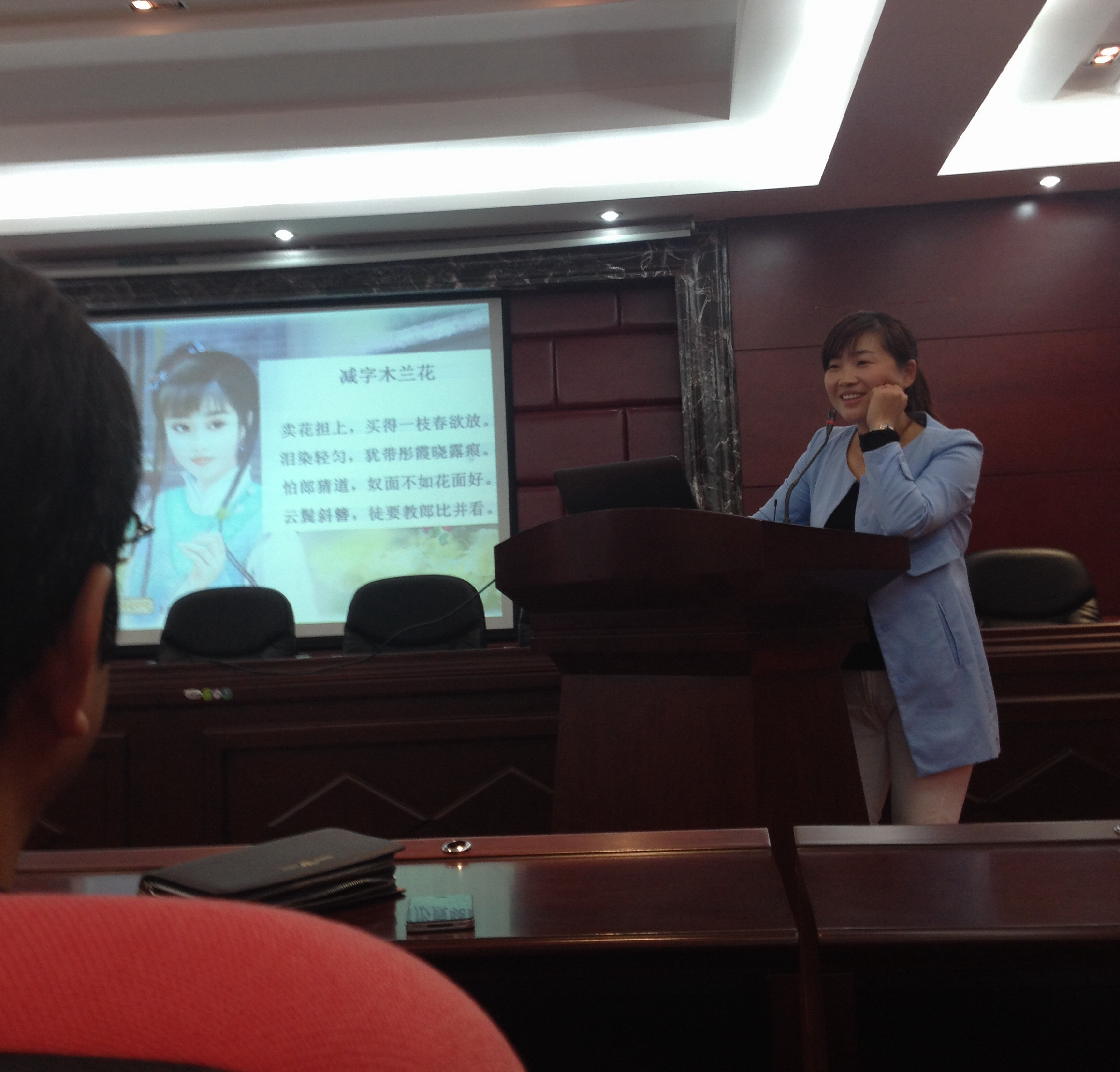 10月29号下午,在衡阳电大南校9楼多功能厅,我校教师周岑以时间为轴,诗词为线,将才女李清照的一生贯穿于词作中,为现场近二百名学子及老师,细细讲述了千古文坛中著名的女词人李清照“欲说还休”的“如水情怀”。
