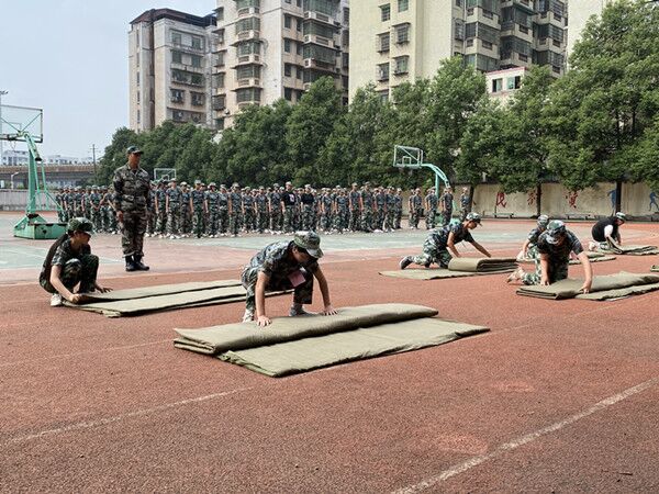 紧接着便是叠被子比赛。每班各派两名同学参赛,限时八分钟。比赛令下之后,同学们迅速开始铺被、卡边,每一个动作都力求细致,争取做到又快又好。