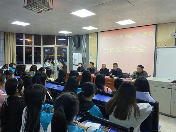 衡阳电大信息网络工程学校开展女生大会 来源: 发布时间:2021-12-28 15:51:34 浏览次数: 次 【字体:小 大】 为关爱全校女生的心理健康,加强女生安全防护知识,衡阳电大信息网络工程学校于3月22日晚上在二楼阶梯教室开展了全体女生大会。衡阳电大信息网络工程学校校长左杰、副校长胡致朋及学生处老师参加。此次大会由学生处彭佳雯老师主讲。彭佳雯老师根据我校女生的年龄、心理特征,从性格培养、行为习惯方面出发,讲解了如何自尊自爱以及同异性交往的原则,以及女生自救、自护的相关措施。(衡阳电大 邹睿熹) 分享到: 【打印正文】