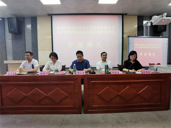 6月29上午,衡阳市党组织书记示范培训暨全市中小学教师师德师风建设高级研修班正式开班。省教师发展中心培训管理科长黄佑生,市教育局党委成员、副局长谭小华,市教育局副调研员兼组干科科长谢晓川,市教育局教师工作科科长陈燕妮,衡阳电大副校长龙永保等领导出席。